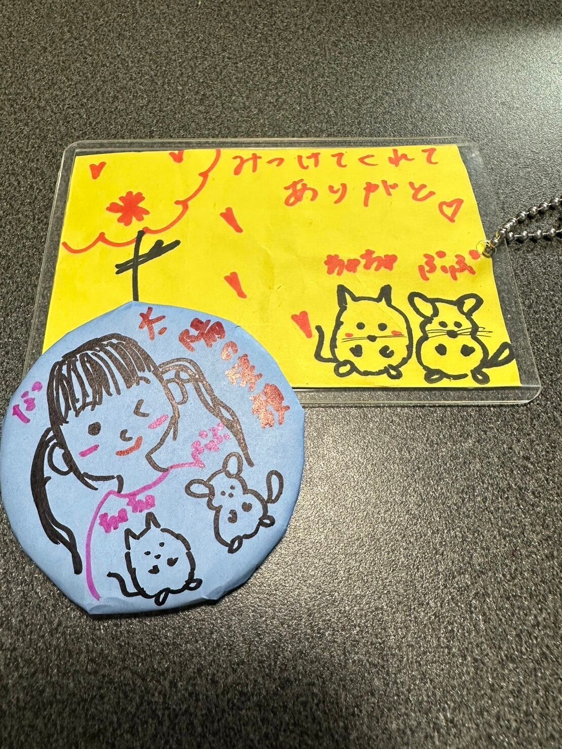 一方、絵のキーホルダーは、かわいい愛情たっぷりのイラストが描かれており、みるだけめ楽しい気分にしてくれます。